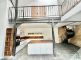 Ancien atelier où l'on fabriquait autrefois les cierges, cet espace atypique se distingue par son charme industriel, avec sa charpente métallique d'origine et sa magnifique verrière qui inonde la pièce de vie de lumière naturelle. Chaque détail de cette maison rappelle son passé, tout en offrant des prestations modernes de grande qualité.