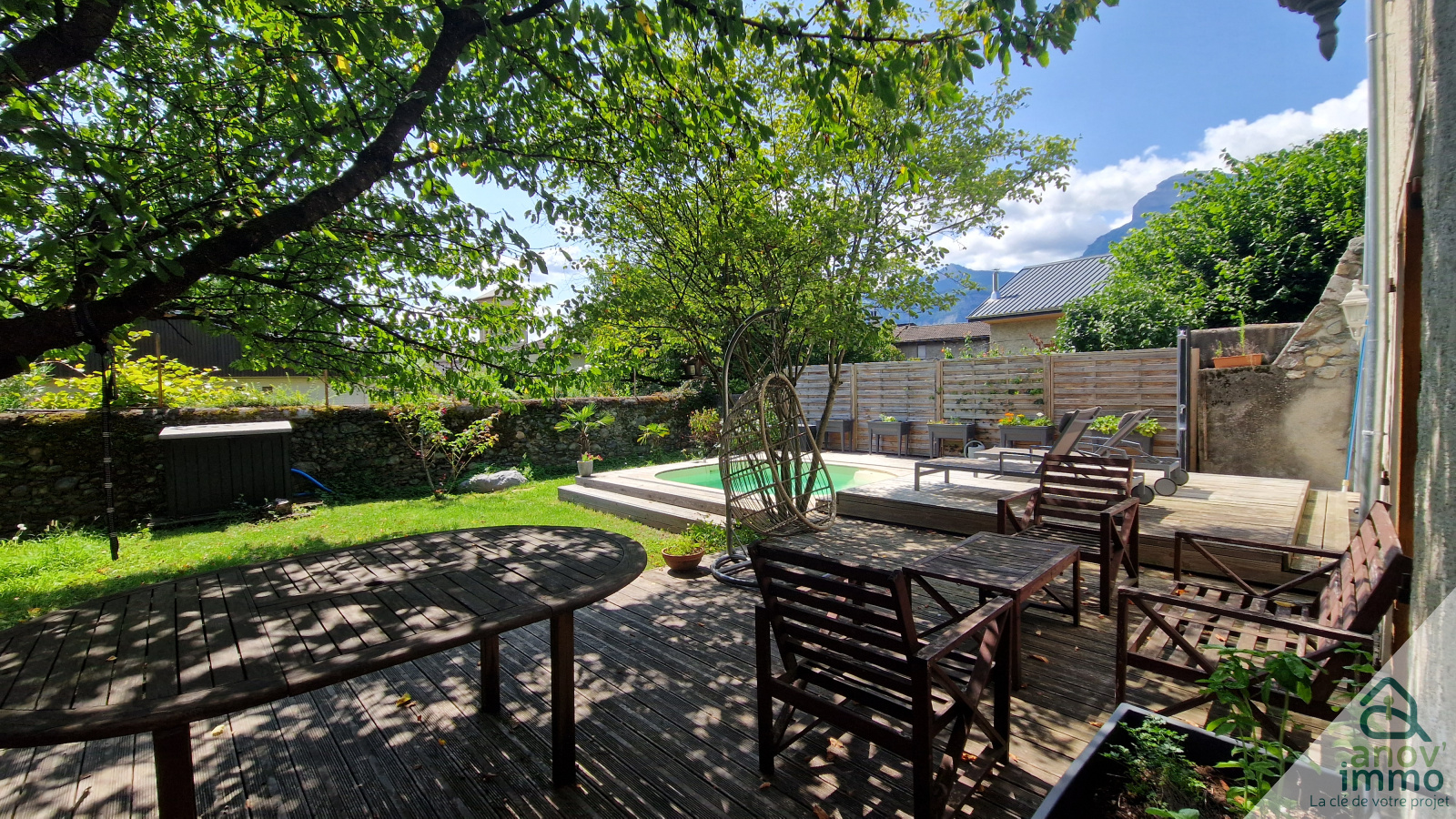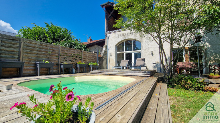- Située au cœur du charmant village de Froges, cette maison unique en son genre, datant du XIXe siècle vous séduira par son authenticité et son potentiel. Avec une configuration atypique et des espaces généreux, ce bien est parfait pour une famille en quête d'un cadre de vie paisible et convivial. Elle se compose, au rez-de-chaussée, d'une vaste entrée s'ouvrant sur un salon cathédrale baigné de lumière, doté d'une cheminée fonctionnelle créant une atmosphère chaleureuse et accueillante. Cette vaste pièce à vivre comprend un espace cuisine/salle à manger ouvert, avec un accès direct sur un jardin arboré de 583 m². Une salle d'eau avec WC vient compléter ce niveau. L'espace extérieur, paisible et sans vis-à-vis, dispose d'une magnifique terrasse en bois, idéale pour vos moments de détente en famille ou entre amis, et d'une piscine semi-enterrée. Le 1er étage dispose de 4 chambres bien agencées, une pièce de stockage, une salle d'eau ainsi qu'un WC séparé. Au 2e étage, vous découvrirez environ 160 m² de combles aménageables offrant un potentiel d'aménagement exceptionnel à votre projet. Deux terrasses en Rooftop surplombants la ville viennent parfaire ce bien d'exception, ainsi qu'une grange de 45 m² au sol et 2 garages attenants à la maison. Le chauffage est assuré par une chaudière gaz récente et la réfection de la toiture a été effectuée en 2004. Montant annuel de la taxe foncière = 1 234€.