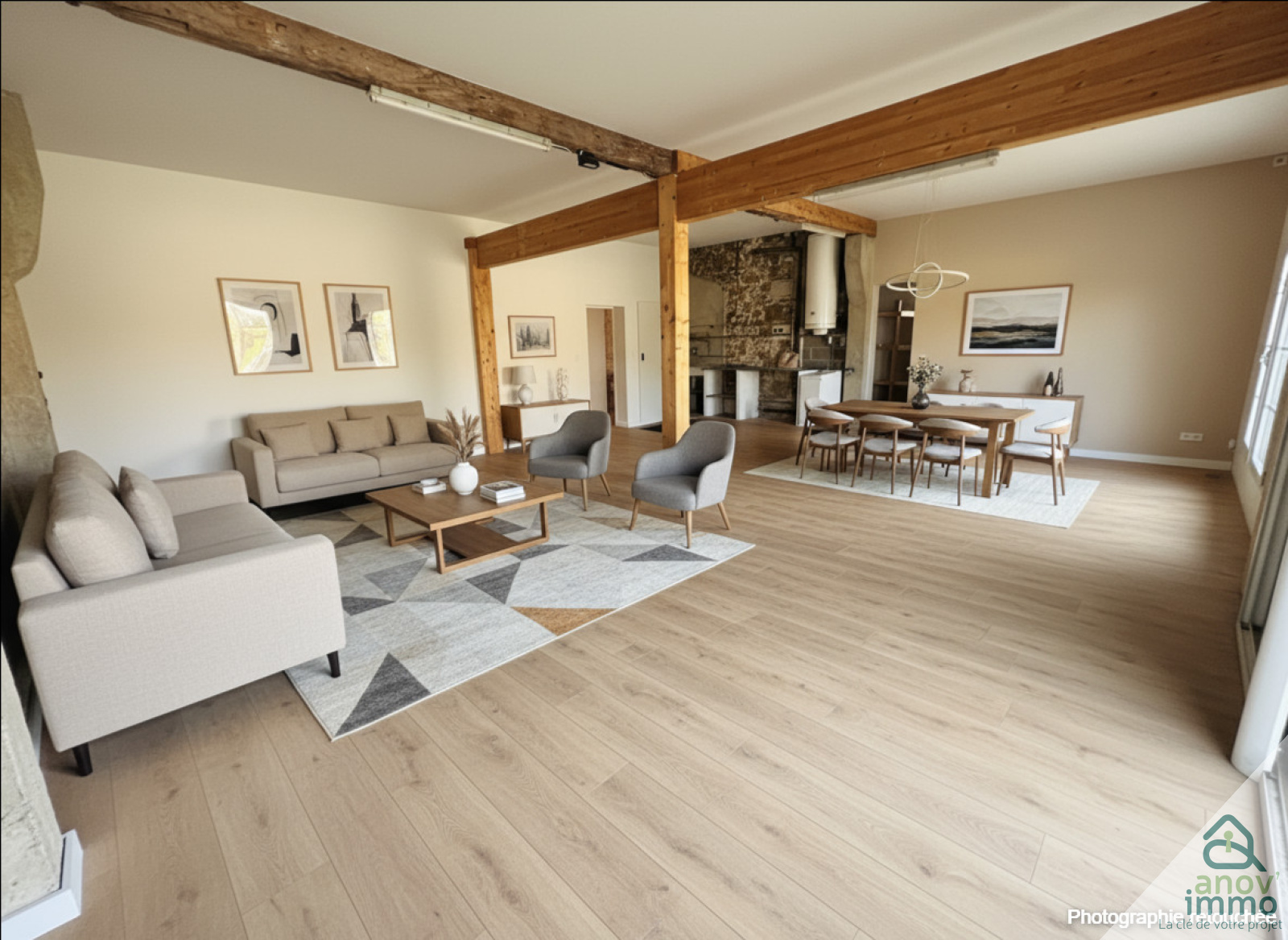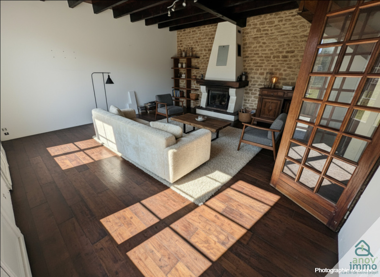 Au rez-de-chaussée, vous trouverez : • une cuisine indépendante, un séjour lumineux agrémenté d’un insert fonctionnel, parfait pour des soirées chaleureuses, une chambre ou un salon, une salle de bains et des toilettes séparées.