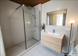 À l’étage : • deux chambres (avec possibilité d’en créer une troisième), une salle d’eau avec WC.