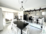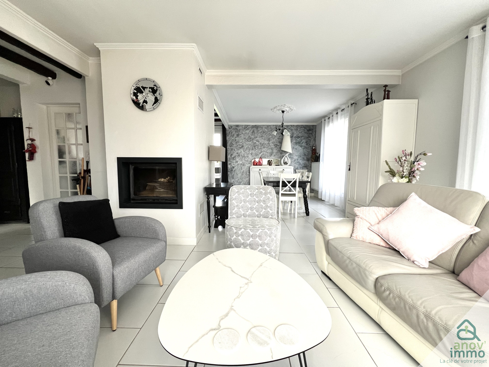 - Une PIÈCE DE VIE qui réunit un salon cosy de 4.55 m2, une salle à manger de presque 23 m2 et une cuisine ouverte de 12 m2, équipée d'un lave vaisselle, d'une plaque induction, d'une hotte. Le tout baigné de lumière. Le salon bénéficie d'un insert, offrant le plaisir authentique de la chaleur du feu de bois.