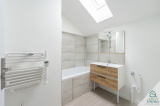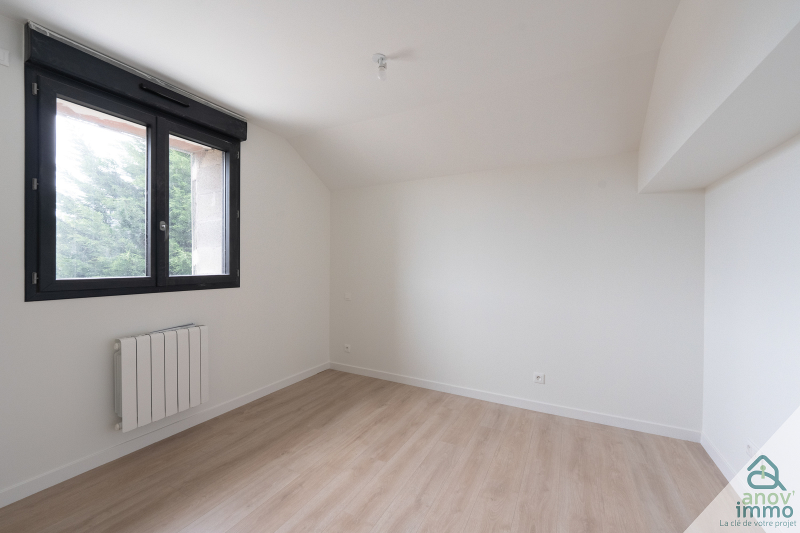Elle se compose au premier étage d'une grande pièce à vivre de plus de 40m² avec cuisine neuve et placards, d'une salle de bains neuve avec douche et baignoire, de trois grandes chambres (15m², 14m² et 12,5m²) et d'un WC.