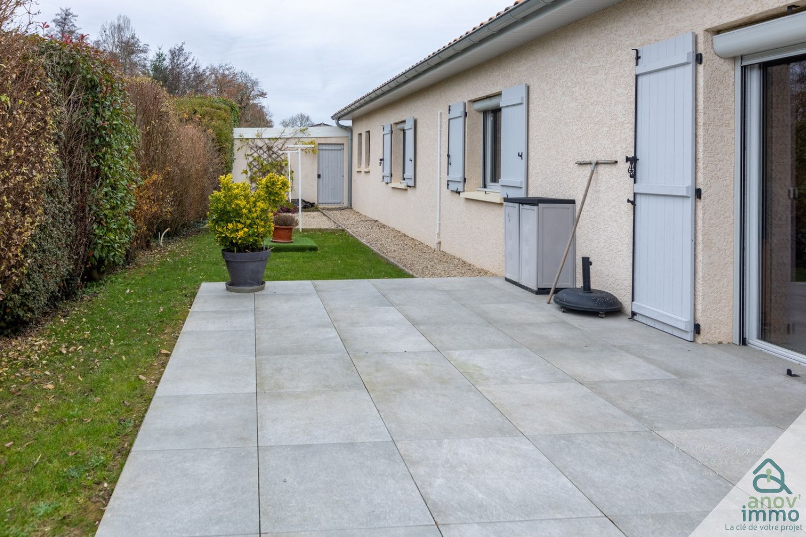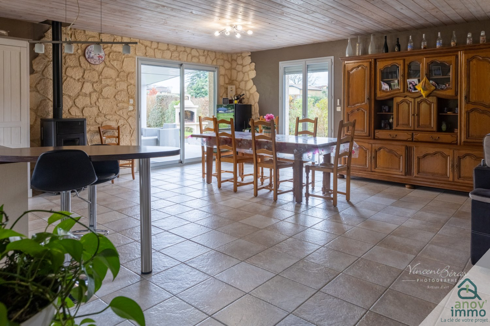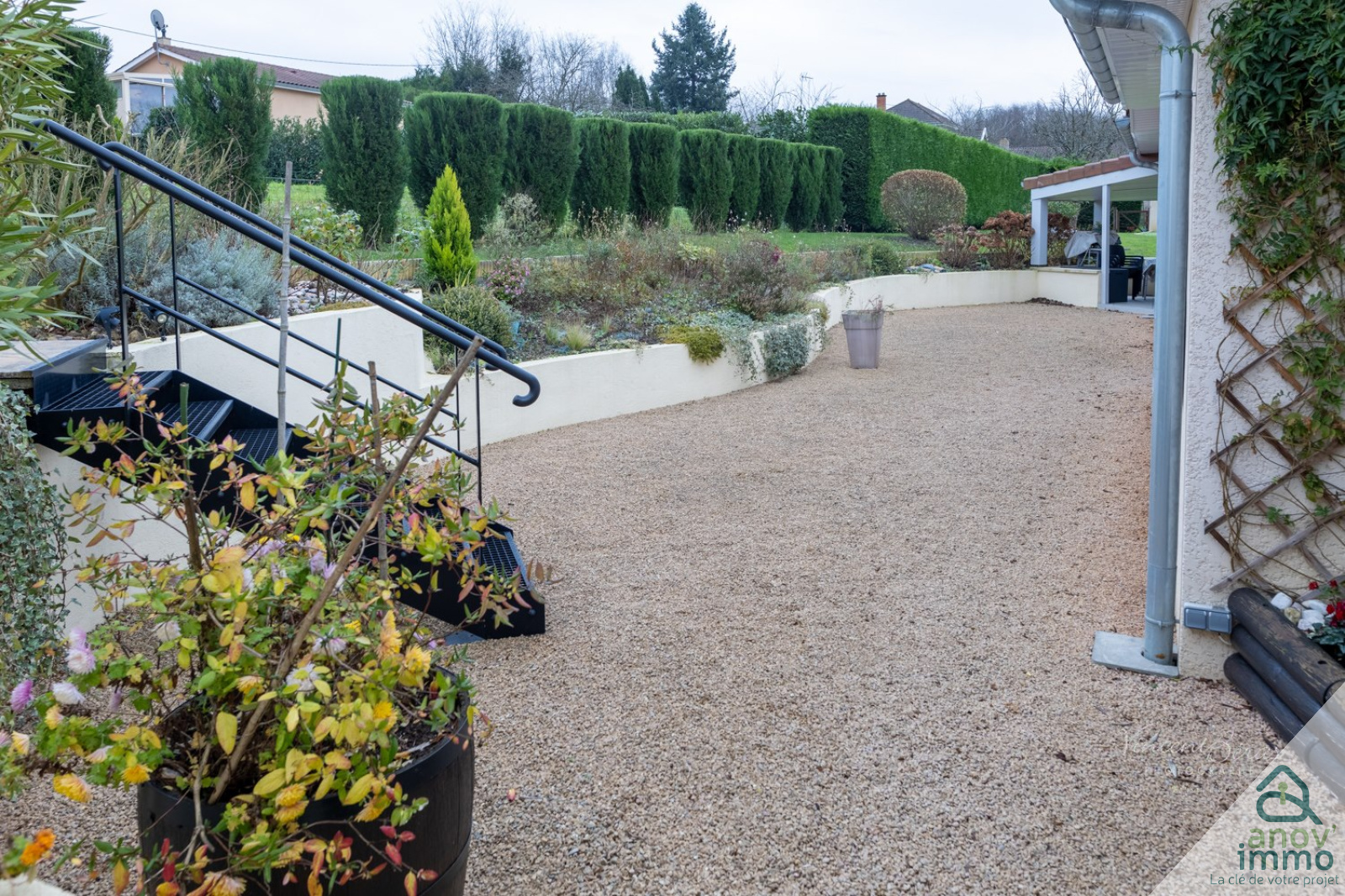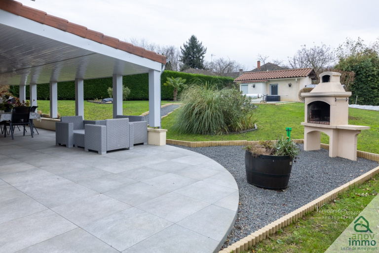 Centre Illiat, au calme, hors lotissement, maison de plain-pied 5 pièces de 110m² sur une parcelle de 1290m² sans vis à vis. Elle se compose d'une cuisine équipée ouverte sur séjour, de trois chambres, d'une buanderie, d'une salle d'eau avec douche à l'italienne, d'un WC, d'une terrasse couverte, d'une terrasse découverte, d'un appentis avec annexe en dur isolé, d'une piscine traditionnelle rénovée également entièrement en 2023, d'un local technique, d'un atelier et d'un cabanon de jardin. Un magnifique terrain paysagé entièrement cloturé, un portail à ouverture automatique et un portillon complètent le bien.