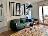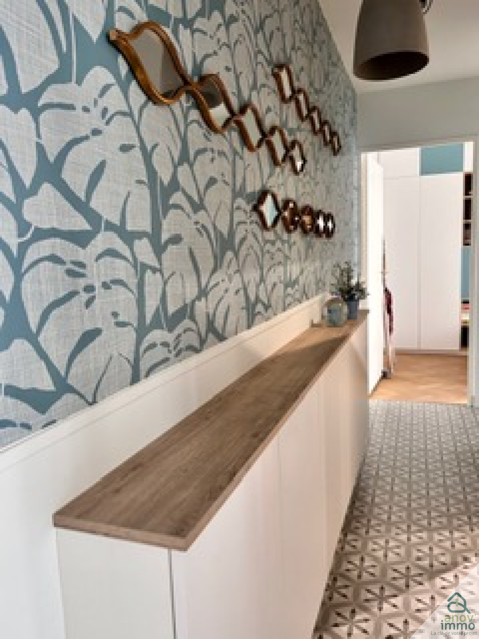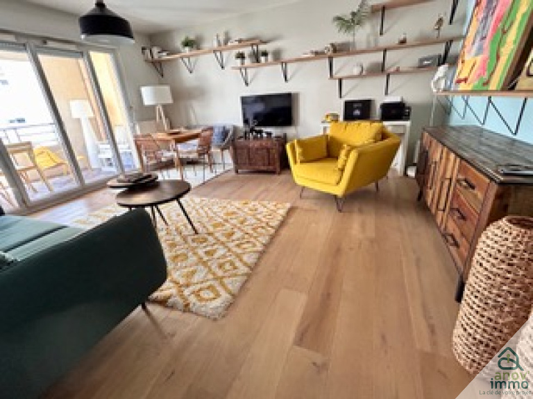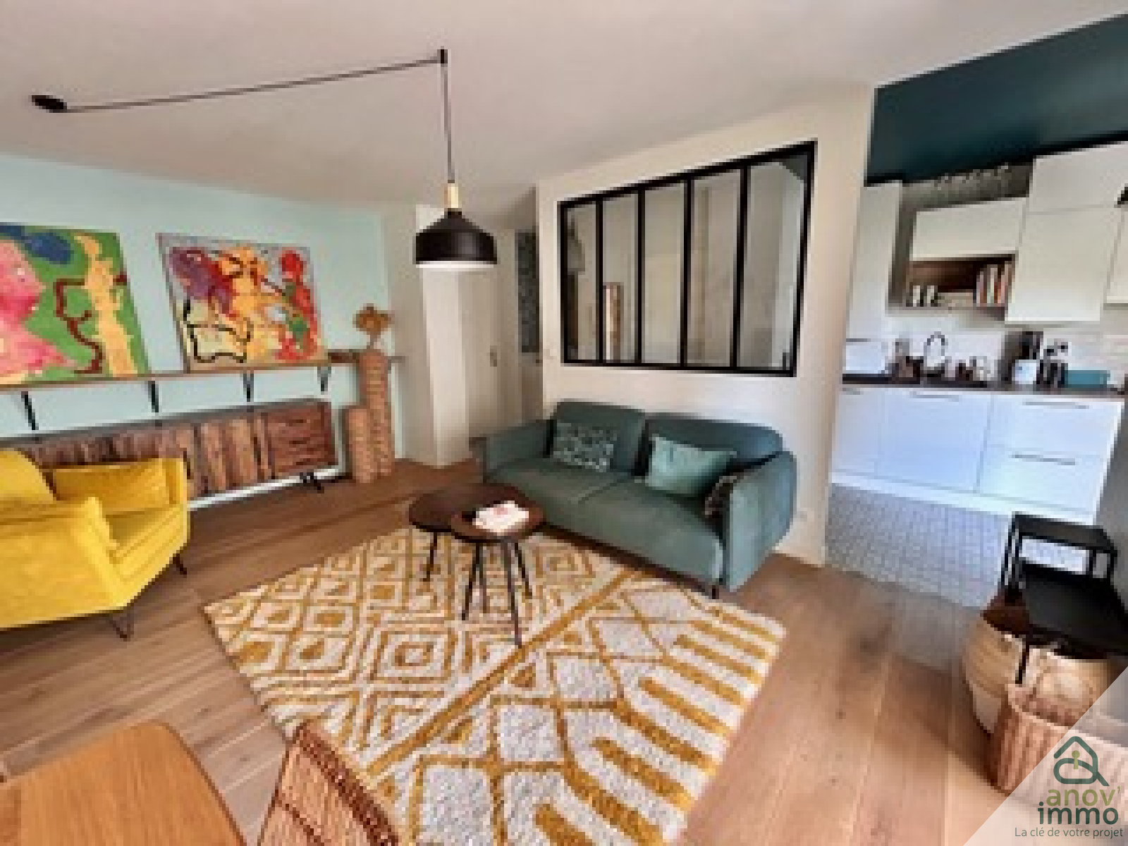 Les atouts : • Séjour lumineux exposé plein sud, ouvrant sur une agréable terrasse. • Cuisine indépendante et bien équipée (Siemens), avec verrière style atelier et accès direct à la terrasse. • Deux grandes chambres de 12 m² : • L’une avec meuble pont et balcon privatif sur jardin, • L’autre avec placard mural intégré. • Salle d’eau moderne avec douche à l’italienne. • WC suspendu indépendant. • Placards intégrés dans l’entrée et le dégagement pour un maximum de rangement. • Appartement entièrement rénové avec des matériaux de qualité, prêt à emménager. • Cave en sous-sol. • Garage box fermé en sous-sol sécurisé (en option).