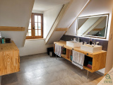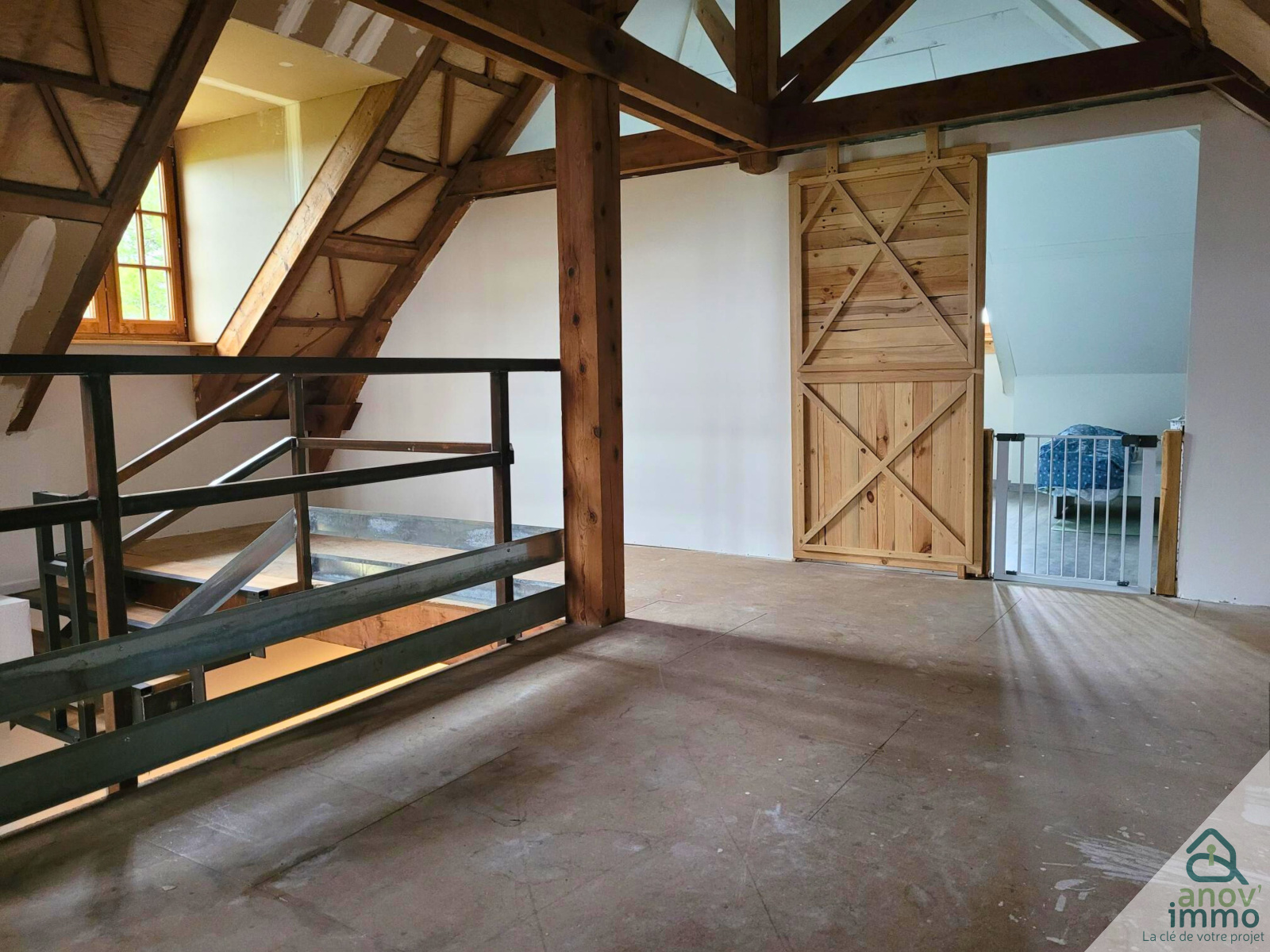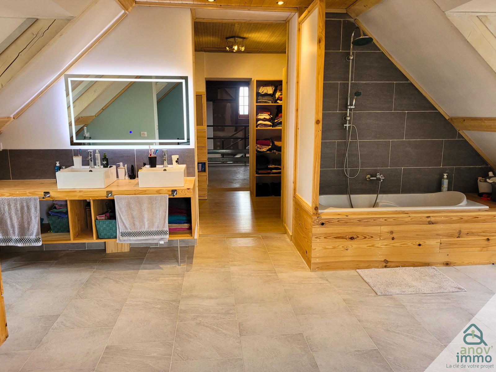 A l'étage, une mezzanine avec sa chapente Compagnon Du Devoir, 2 chambres dont une suite parentale avec salle de bain et dressing et un bureau.