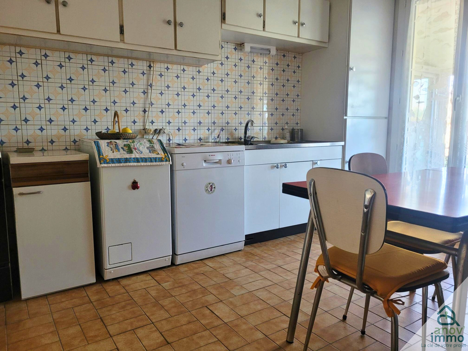 Au rez-de-chaussée, une grande entrée, une cuisine aménagée séparée de la pièce de vie de 31.49 m², un cellier et un garage.