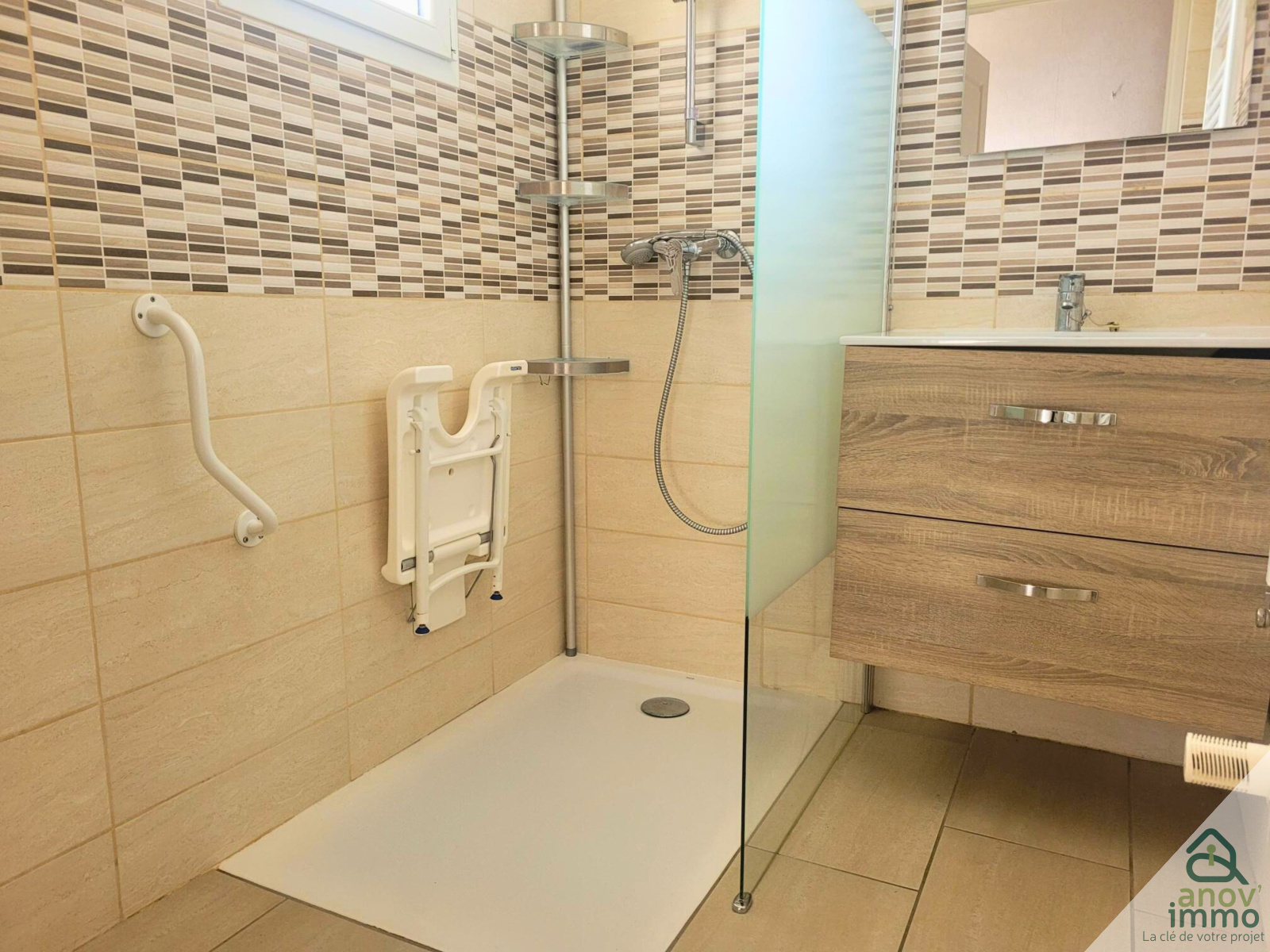 Au rez-de-chaussée, une salle d'eau avec une douche à l'italienne, une vasque, un séche serviette, une cuisine aménagée et séparée de la pièce de vie de 28 m² TRES LUMINEUSE où vous pourrez profiter de vos soirée devant la cheminée.