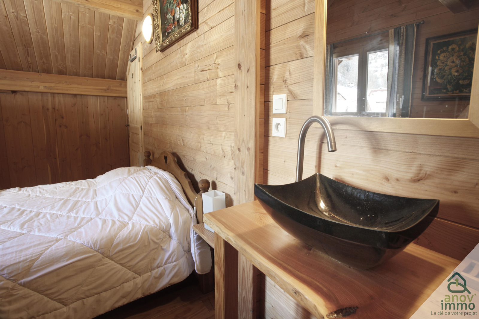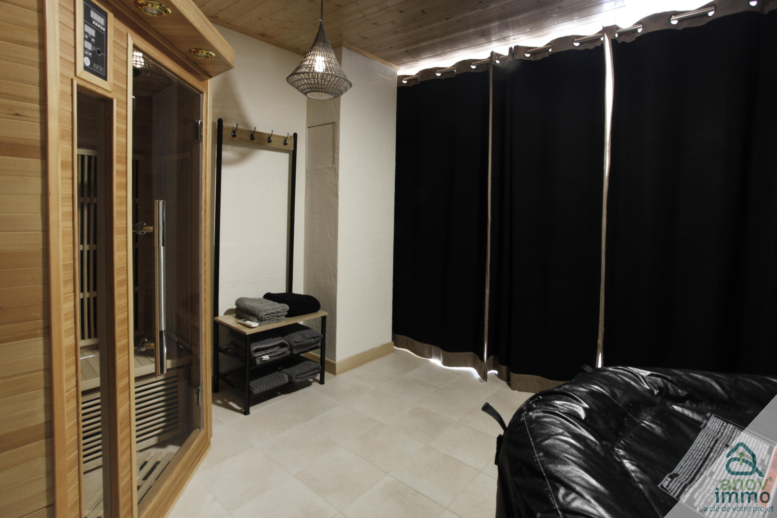 L'Espace Modulable (environ 58 m²) : Actuellement dédié à la détente (sauna, jacuzzi, salle de jeux) et à l'autonomie alimentaire (cuisine secondaire avec four à pizza, cellier), ce niveau peut être rattaché au chalet principal ou transformé en un second appartement indépendant.