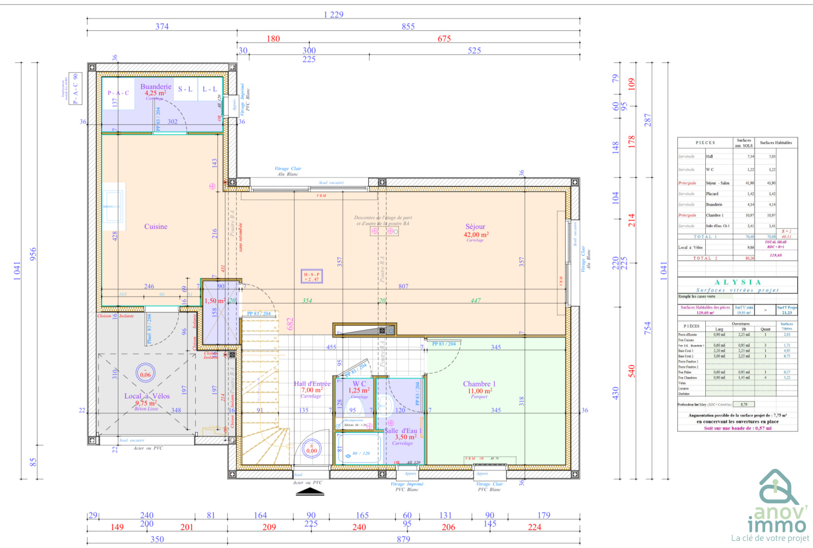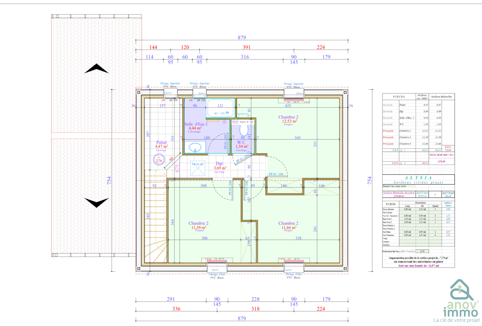 - Huisseries double vitrage en aluminium avec volets roulants motorisés