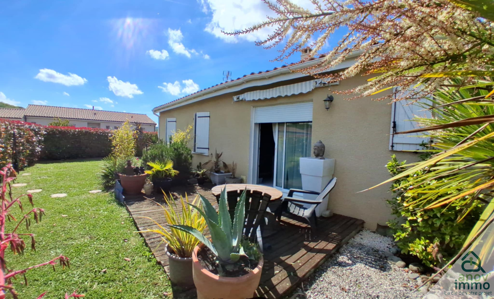 Côté extérieur, vous pourrez profiter de votre terrasse et du jardin en toute sérénité...