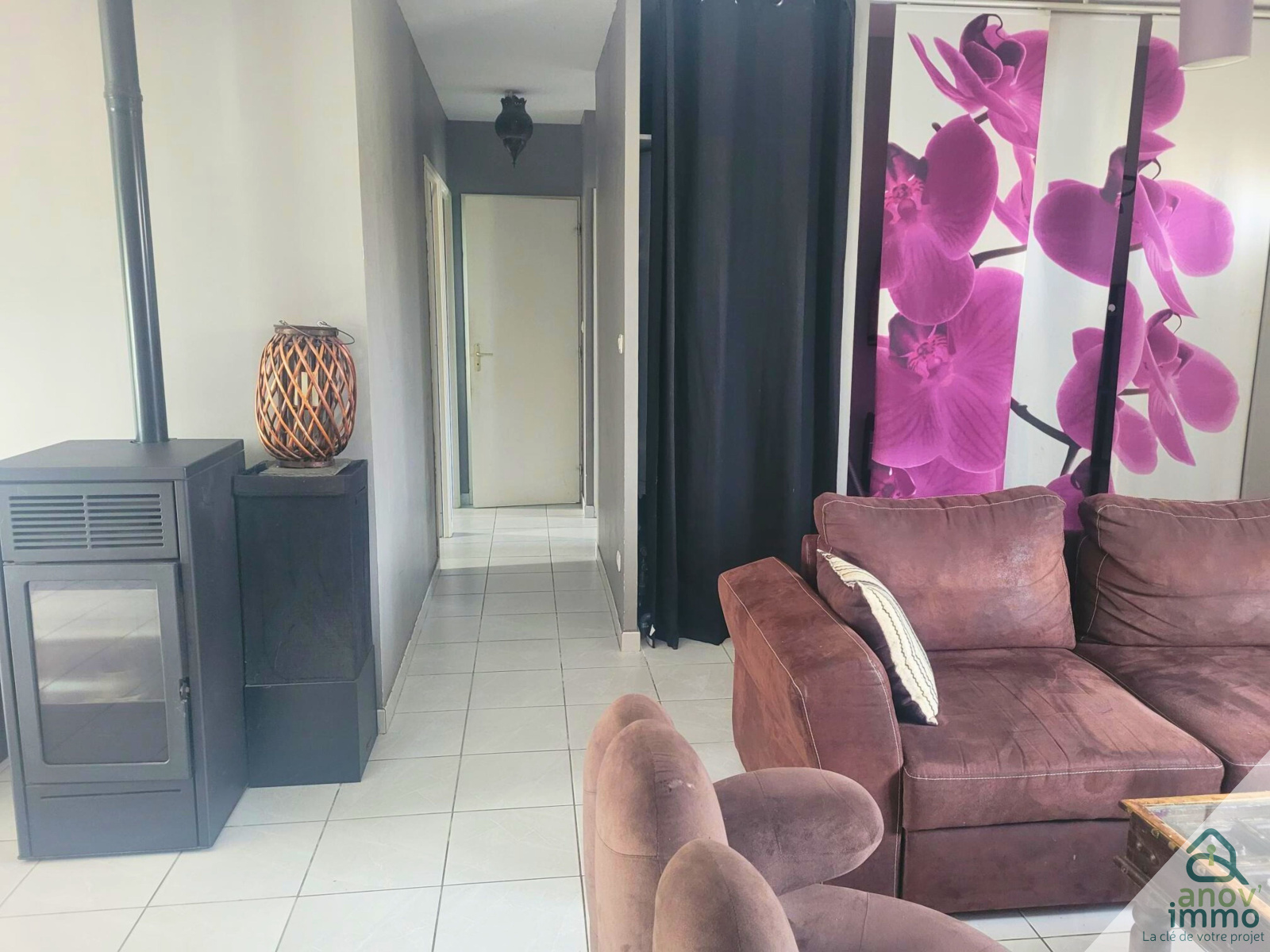 Elle se compose d'un grand placard d'entrée, d'une cuisine équipée ouverte sur la pièce de vie TRES LUMINEUSE de 33 m².