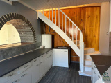 Au rez-de-chaussée, une cuisine aménagée ouverte sur la pièce de vie de 37 m², une salle d'eau avec toilette, double vasque et sèche serviette.