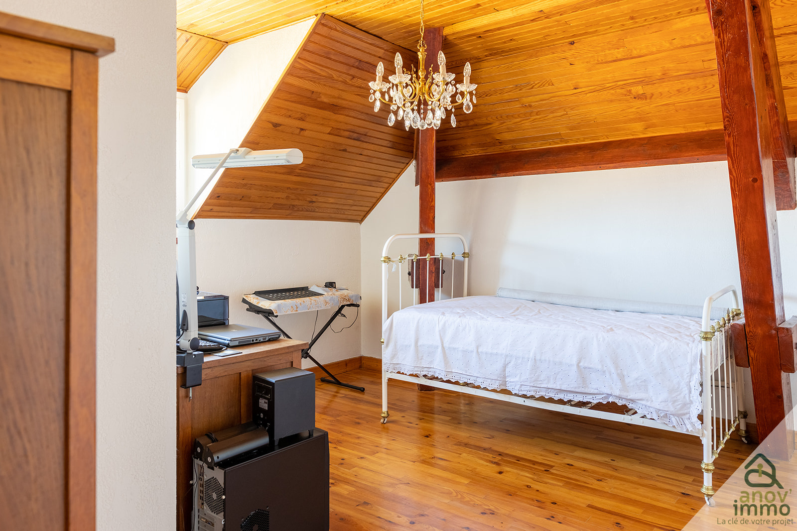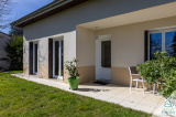 Meximieux centre, à proximité à pied du centre ville et de toutes ses commodités (Gare, Collège, Futur lycée, Commerces, Médecins,...), grande maison de caractère 7 pièces de 166m² sur sous-sol complet et sur un terrain de 2261m² avec vue panoramique. La maison se compose au rez de chaussée d'une entrée donnant sur séjour et sur cuisine indépendante équipée, d'une chambre, d'une salle d'eau, d'un WC et d'un débarras. Au 1er étage sont aménagés 4 chambres supplémentaires, une salle de bains, un WC et un rangement. Enfín, au sous-sol sont présents un garage, une cave, une buanderie et une chaufferie. Un terrain entièrement cloturé, arboré, paysagé et aménagé d'une terrasse, une cour pavée, une grande allée et un portail à ouverture manuelle complètent le bien.