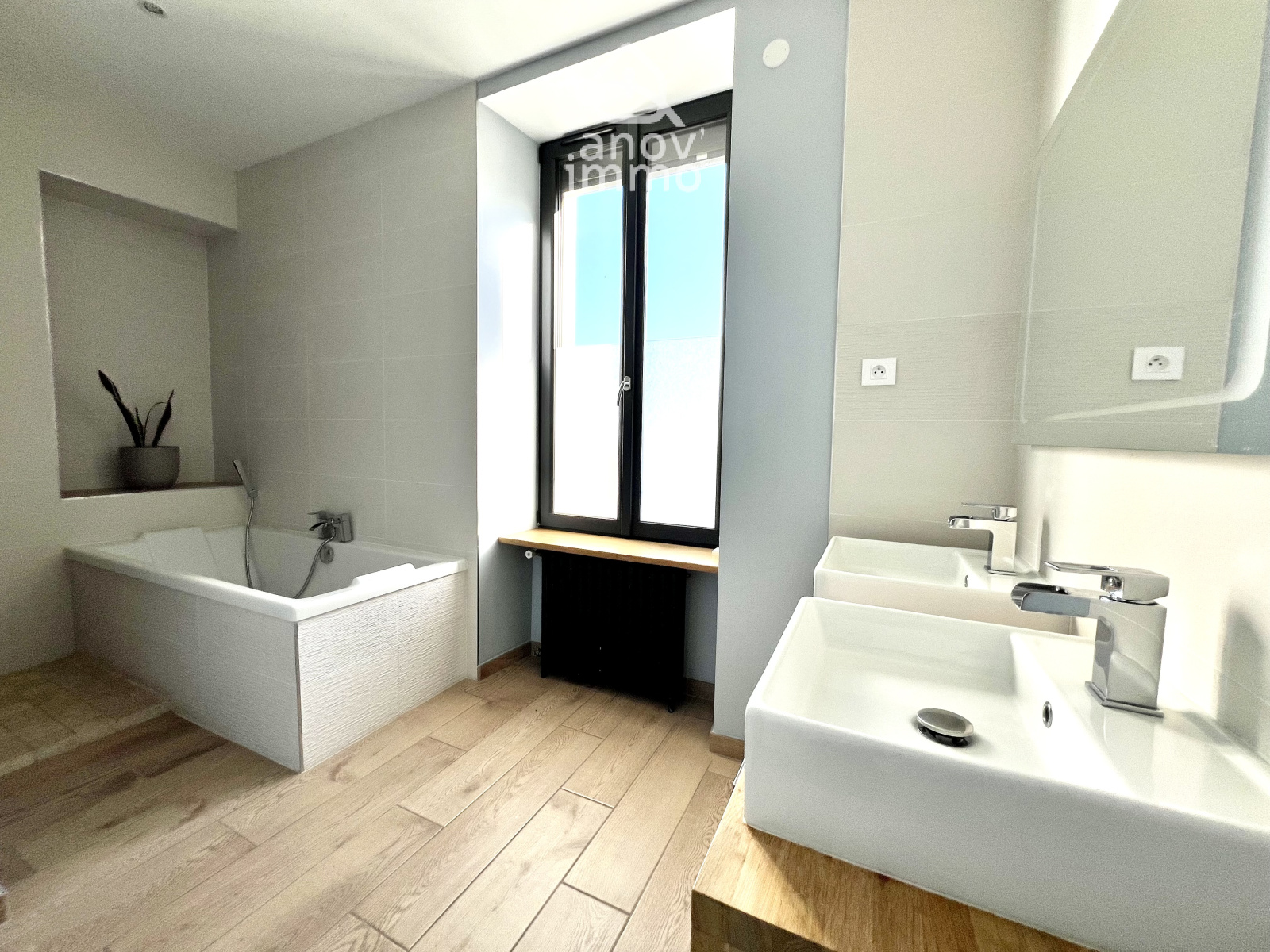 - La SALLE DE BAIN, spacieuse et soigneusement aménagée , propose des prestations de qualité : douche à l'italienne, baignoire, double vasque, miroir,