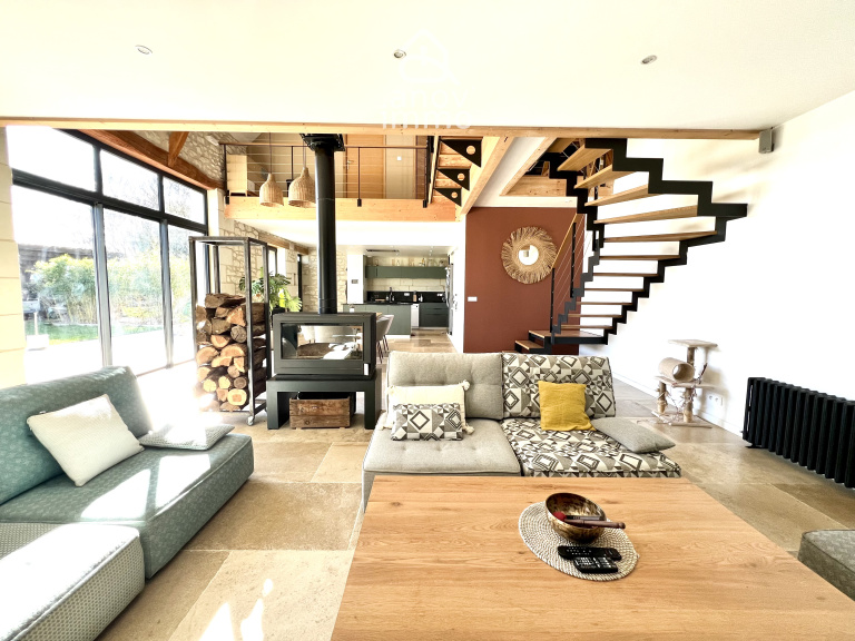 Derrière ces murs chargés d'histoire datant des années 1900, une rénovation soignée a su préserver l'âme des lieux tout en lui insufflant une modernité remarquable. Dès l'entrée, le charme opère. Les volumes généreux baignés de lumière naturelle, la hauteur sous plafond et la pierre apparente créent une atmosphère à la fois chaleureuse et contemporaine. Chaque espace a été pensé avec gout, pour allier confort, fonctionnalité et esthétisme.