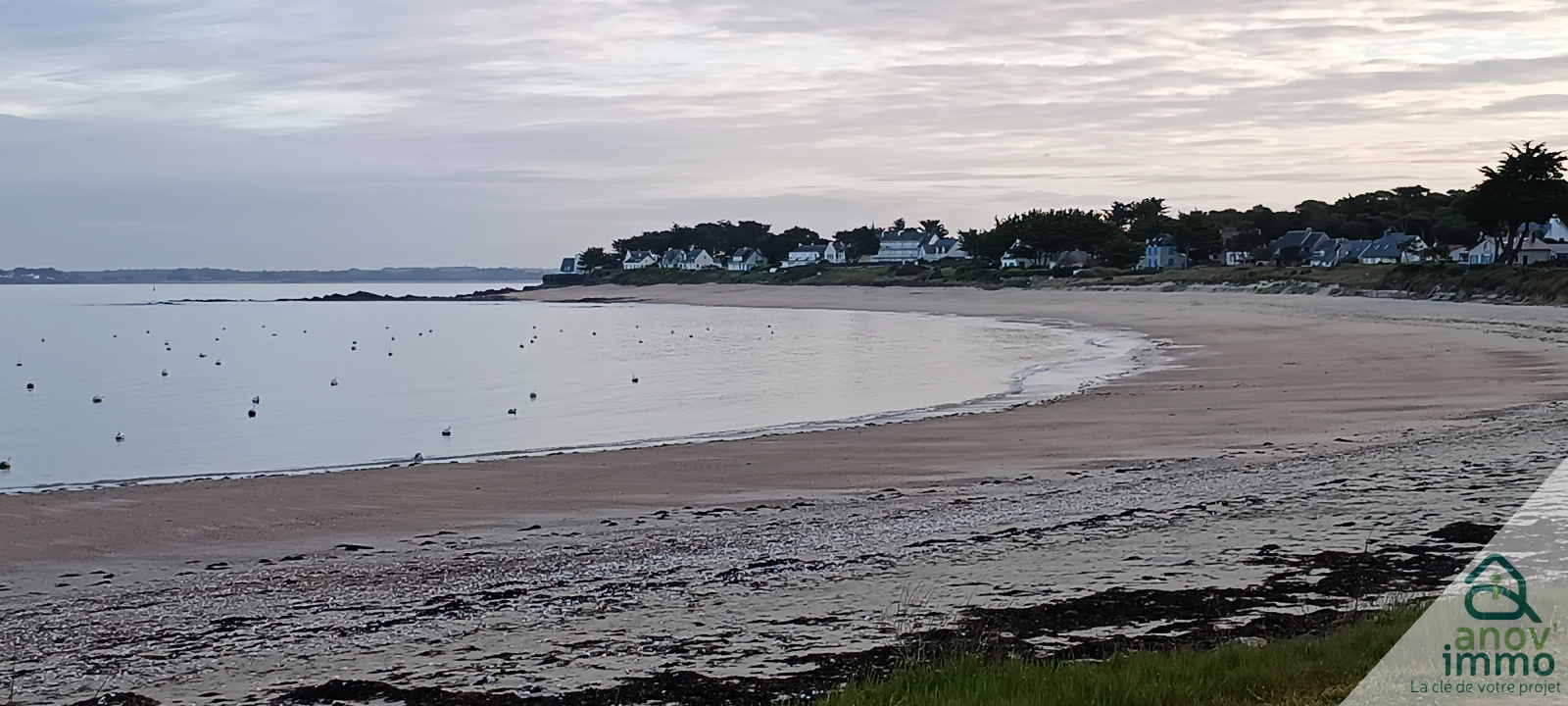À Mesquer, sur une parcelle close de 250 m2, découvrez cette maison bois de 2019, lumineuse située dans un environnement paisible à deux pas de la plage de Lanseria, des marais et des commodités.
