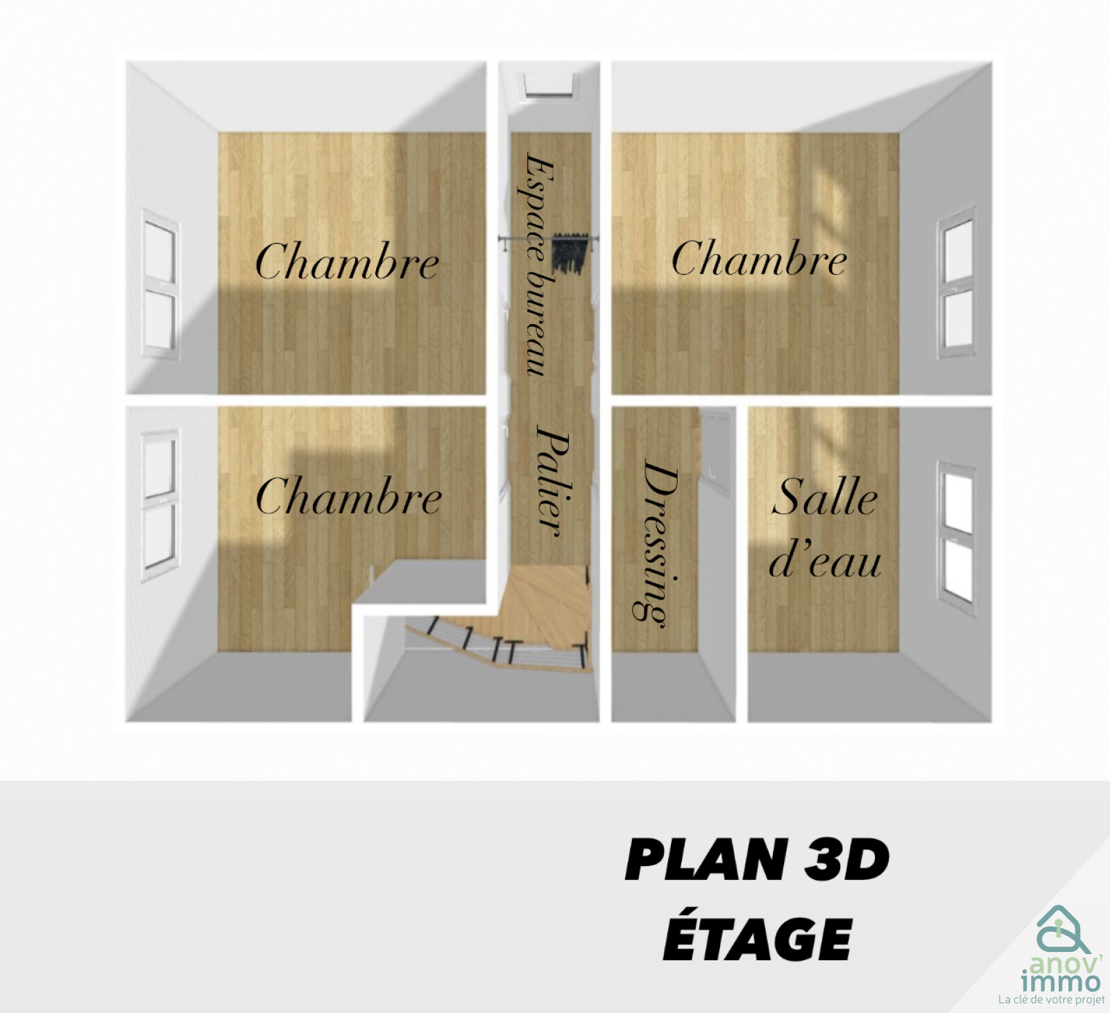 - Un étage optimisé avec ses 3 chambres, son espace bureau, sa salle d'eau avec wc