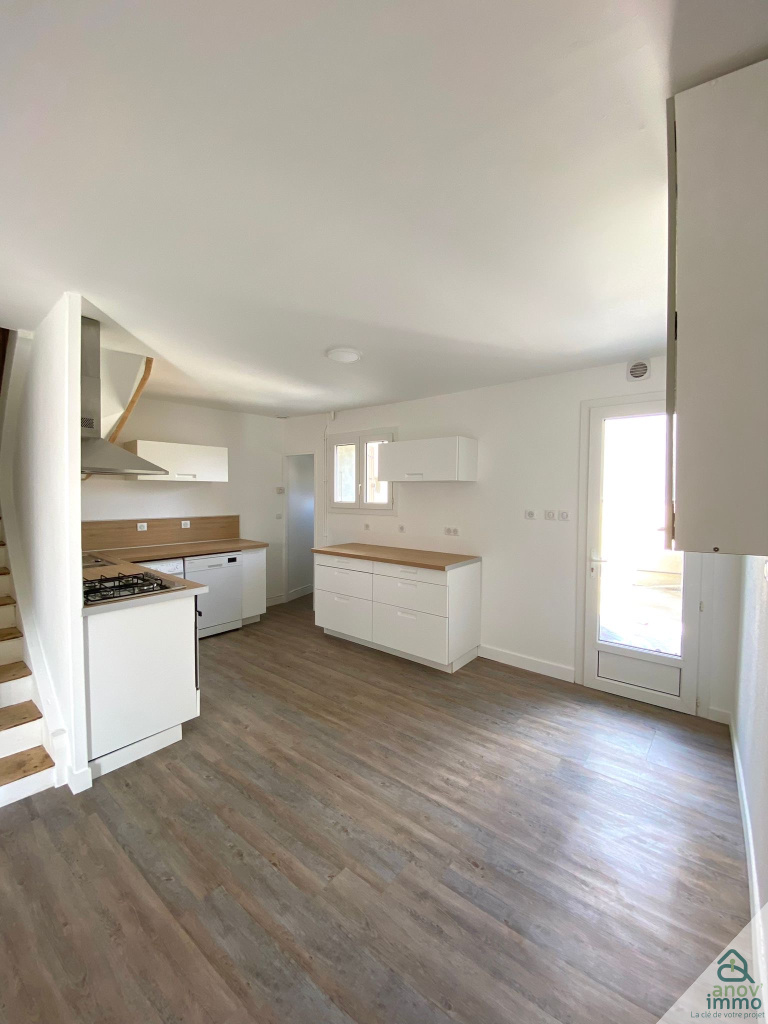 Au rez-de-chaussée : pièce de vie avec cuisine ouverte, WC et accès à la cour de 20m2