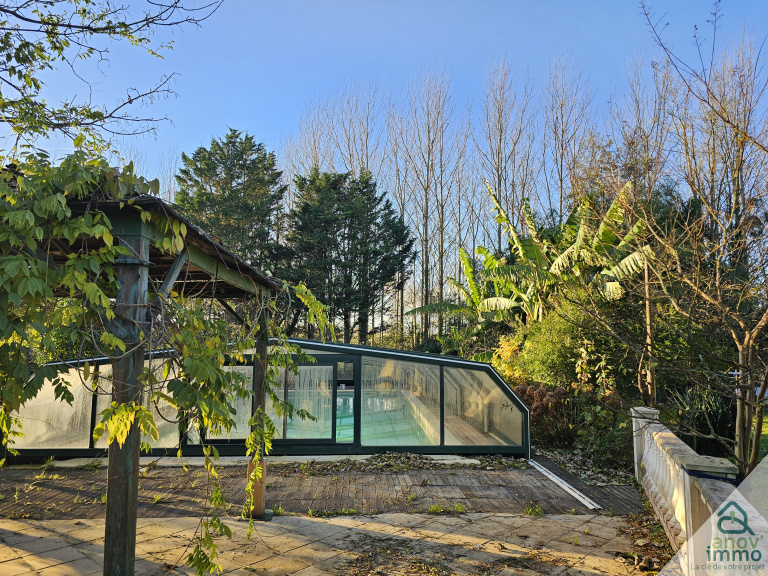 Profitez du beau jardin paysagé de 2000m2, de la piscine couverte et chauffée.