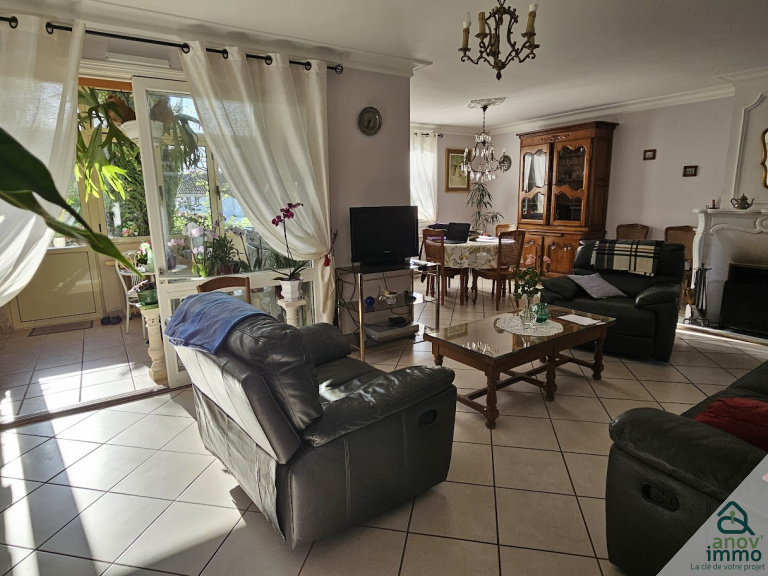 Cette maison vous offre une belle pièce de vie lumineuse et traversante avec une cheminée, ouverte sur la cuisine aménagée et équipée et sur une véranda chauffée, un WC qui donne dans l'entrée complète la partie jour.