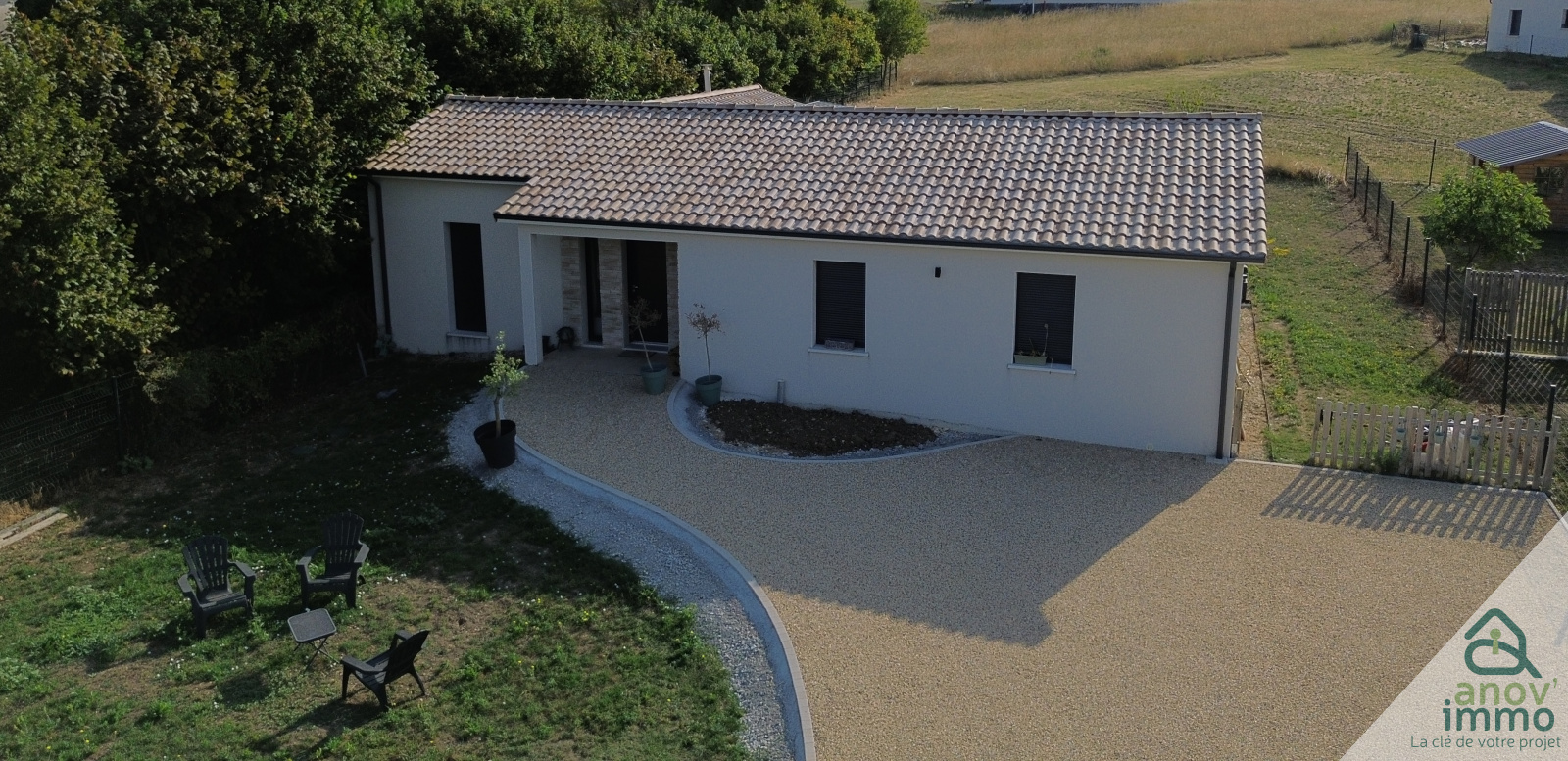 À vendre : maison de plain-pied encore sous garantie décennale. Située dans un environnement paisible tout en restant à proximité immédiate de la ville, cette propriété allie confort, modernité et praticité.