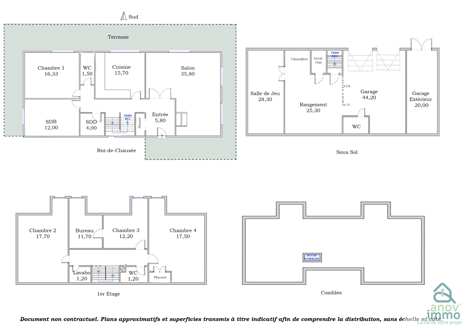 Un espace pour toute la famille : Un grand salon lumineux avec cheminée, une cuisine dînatoire avec accès à la terrasse, un rez-de-chaussée indépendant, 4 chambres (plus un bureau qui peut devenir une 5ème chambre !), et un sous-sol avec une salle de jeu et un garage pour deux voitures.