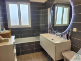 A l'étage, 3 chambres, une salle de bain avec baignoire, un meuble double vasque et un toilette.