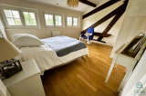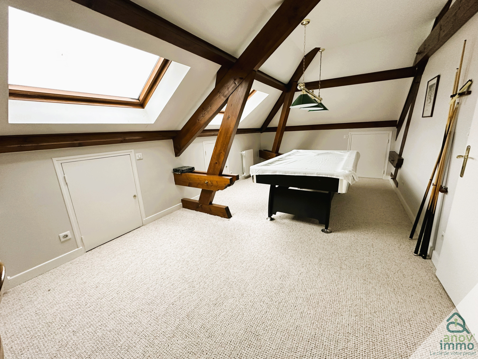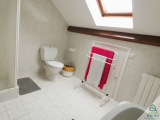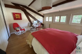 A l'étage, un grand palier dessert trois grandes chambres avec une belle hauteur (14 m², 18 m² et 18 m²), une salle d’eau avec wc, ainsi que de vastes combles (61 m²) qui offrent de nombreuses possibilités d’aménagement (salle de jeux, suite parentale, atelier, etc.).