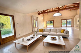 Prestations de qualité : plancher chauffant et rafraîchissant par géothermie avec réglage par pièce, isolation des murs intérieure et extérieure, volets roulants électriques, éclairages avec variateurs, escalier, portes et placards muraux en bois massif. Cuisine équipée avec nombreux rangements, four classique, four vapeur et micro-ondes, table à induction et friteuse intégrée dans l'ilot central.