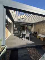 L’espace extérieur comprend une terrasse conviviale avec pergola bioclimatique, parfaite pour vos moments de détente ou repas en extérieur.