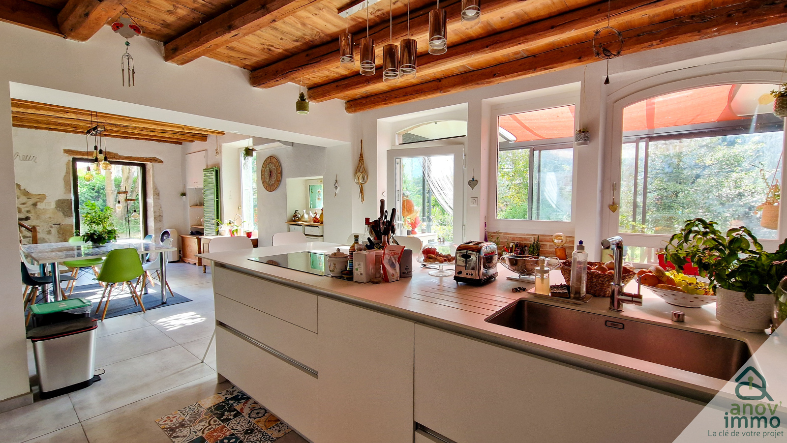 LA TERRASSE - Centre du village - Située dans un environnement paisible, cette magnifique bâtisse en pierre datant de 1836 a été entièrement rénovée avec soin, alliant le cachet de l’ancien et des prestations contemporaines. D’une surface généreuse de 225 m² au sol, elle offre des volumes remarquables et une qualité de vie exceptionnelle.
