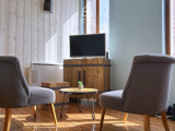 Au deuxième étage : une entrée séjour avec coin nuit, une cuisine, une salle de douche avec wc.