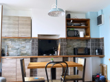 Au troisième étage en duplex : une entrée, une cuisine, un séjour avec coin bureau, une chambre, une salle de bains ( baignoire balnéo/ douche)