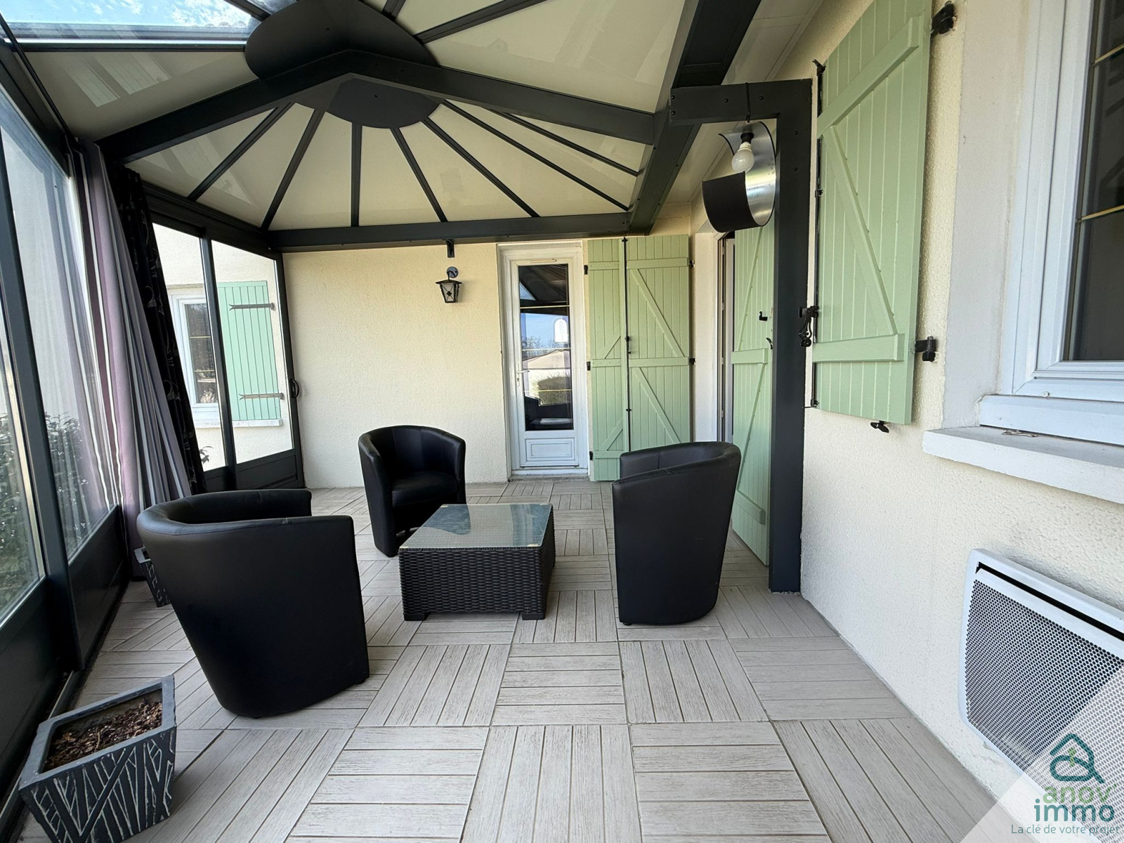 * Une véranda moderne chauffée de 13,5 m², véritable pièce de vie supplémentaire, orientée vers le jardin et la piscine