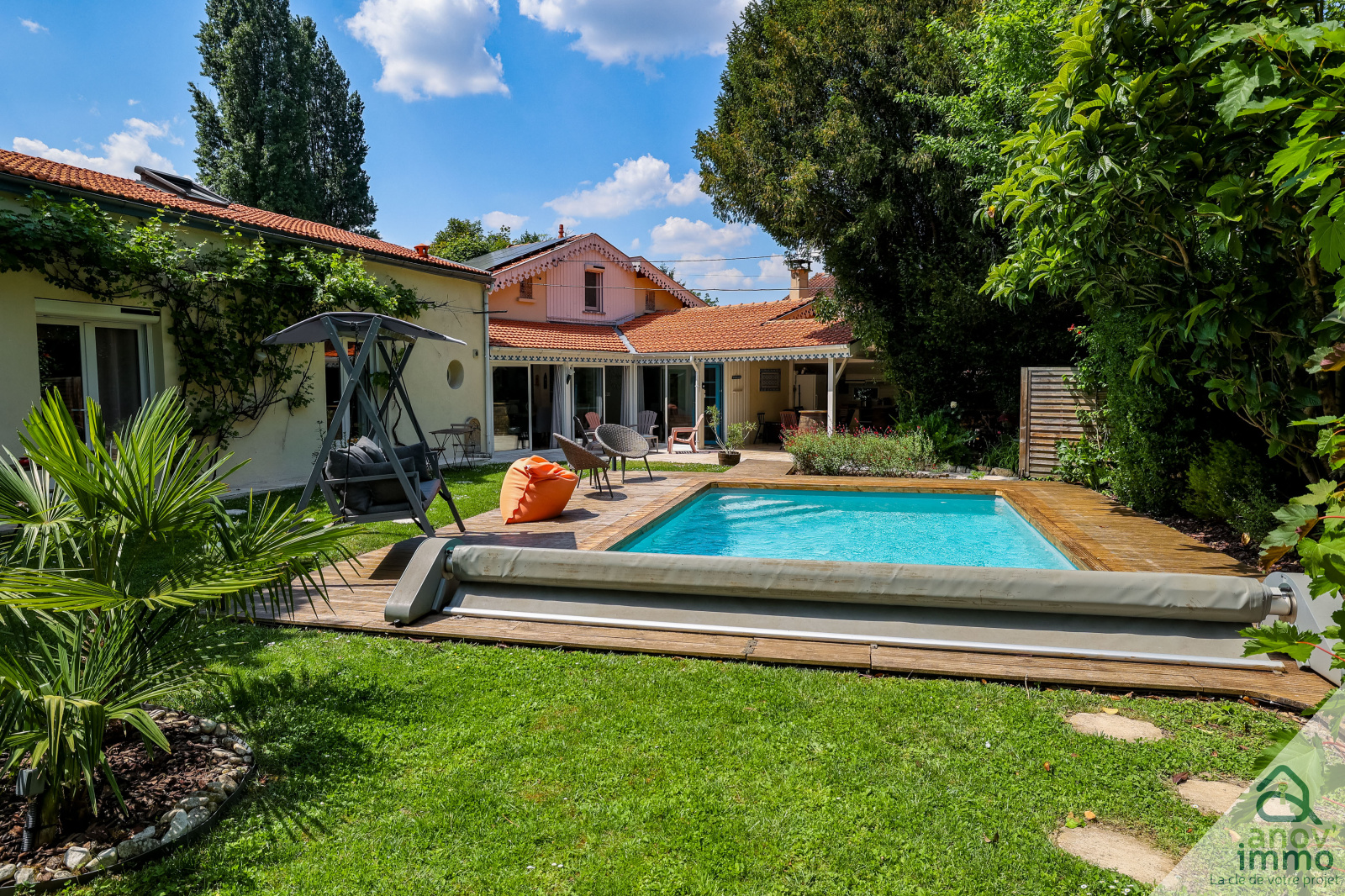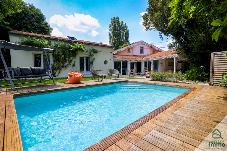 Ce bien d'une surface de 182 m2 a été entièrement rénové avec soin et modernité. Son élégant jardin, clos et arboré, avec piscine chauffée sans vis-à-vis vous invite à la détente et aux moments de convivialité.