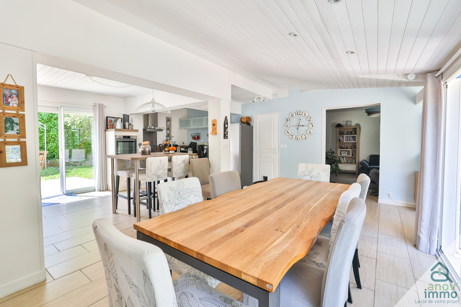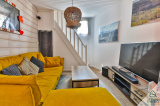 - d’une grande pièce de vie lumineuse (avec cuisine ouverte) donnant l’accès aux deux terrasses de la maison