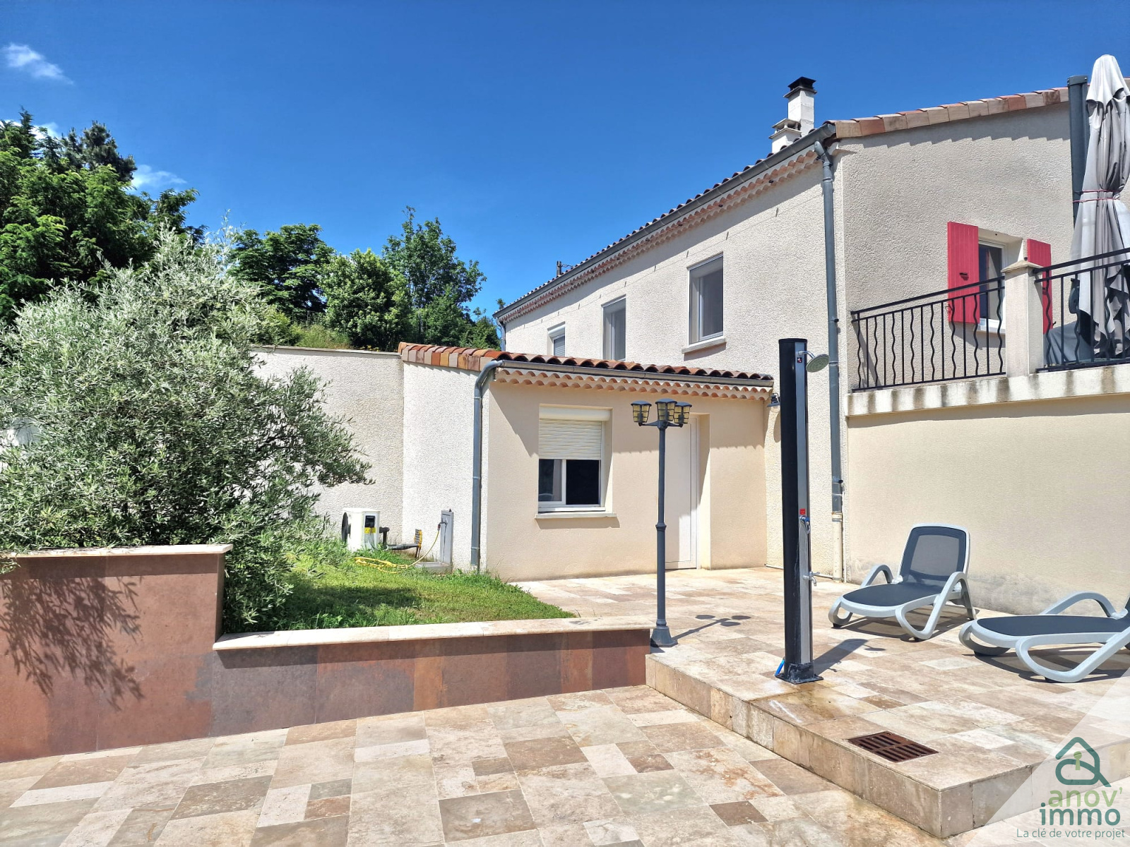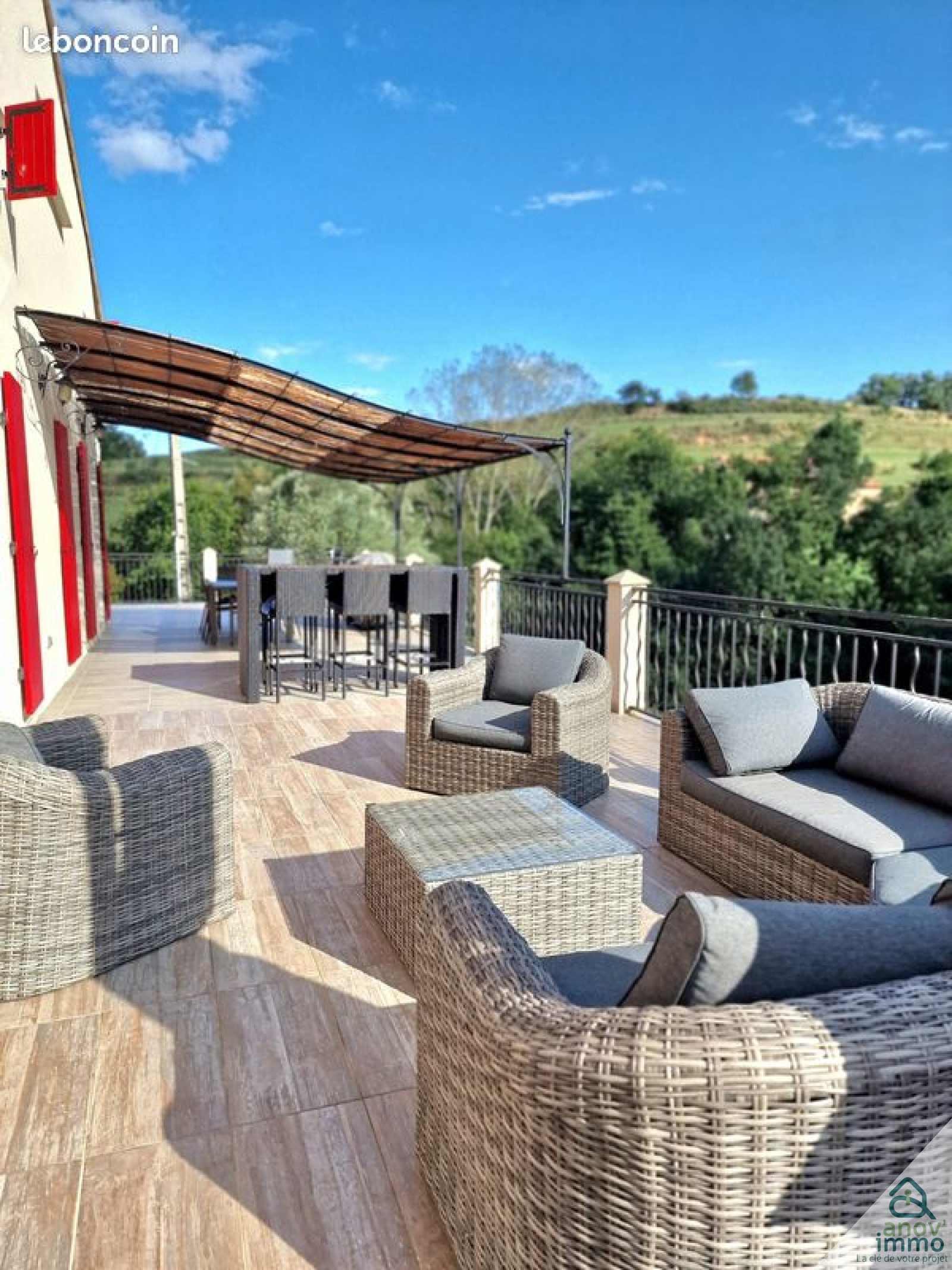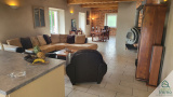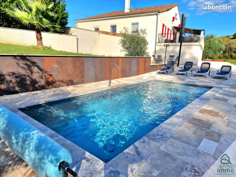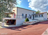 Elle se compose en rez-de-chaussée d'un hall d'entrée, d'une cuisine entièrement équipée ouverte sur un beau séjour pour une pièce à vivre de plus de 60m² donnant sur une terrasse plein Sud de plus de 100m², trois chambres dont une avec terrasse privative de 50m², une salle d'eau, une buanderie et un WC. Un escalier dessert ensuite à l'étage une grande chambre avec salle de bains, une salle de jeux, un bureau et un WC. Au sous-sol, se présentent un grand garage pouvant accueillir 4 voitures, un atelier, une magnifique cave en pierre naturelle et un local technique. Une piscine traditionnelle avec une belle terrasse en travertin, une cour goudronnée en lie de vin, un terrain de pétanque et un portail métallique à ouverture automatique complètent le bien.