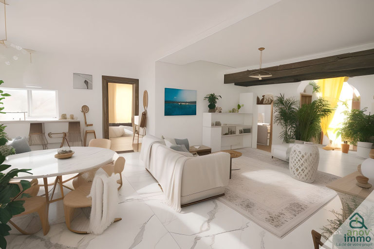 - La pièce de vie spacieuse et lumineuse de 40m² comprend un salon chaleureux et une cuisine ouverte, idéale pour partager des moments conviviaux.