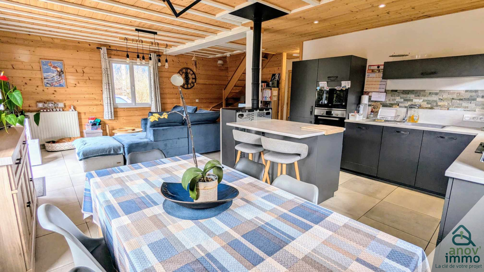 Située dans un environnement paisible et verdoyant, cette charmante maison de 107 m² habitables (140 m² de surface au sol) vous séduira par son atmosphère chaleureuse et sa vue sur les montagnes.