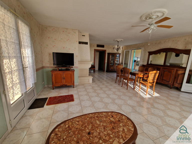 - Pièce de vie (41 m2) : Grande pièce de vie lumineuse, comprenant un salon et une salle à manger, donnant sur une véranda côté jardin, idéale pour profiter des journées ensoleillées. Un insert permet une ambiance agréable dans cette pièce.