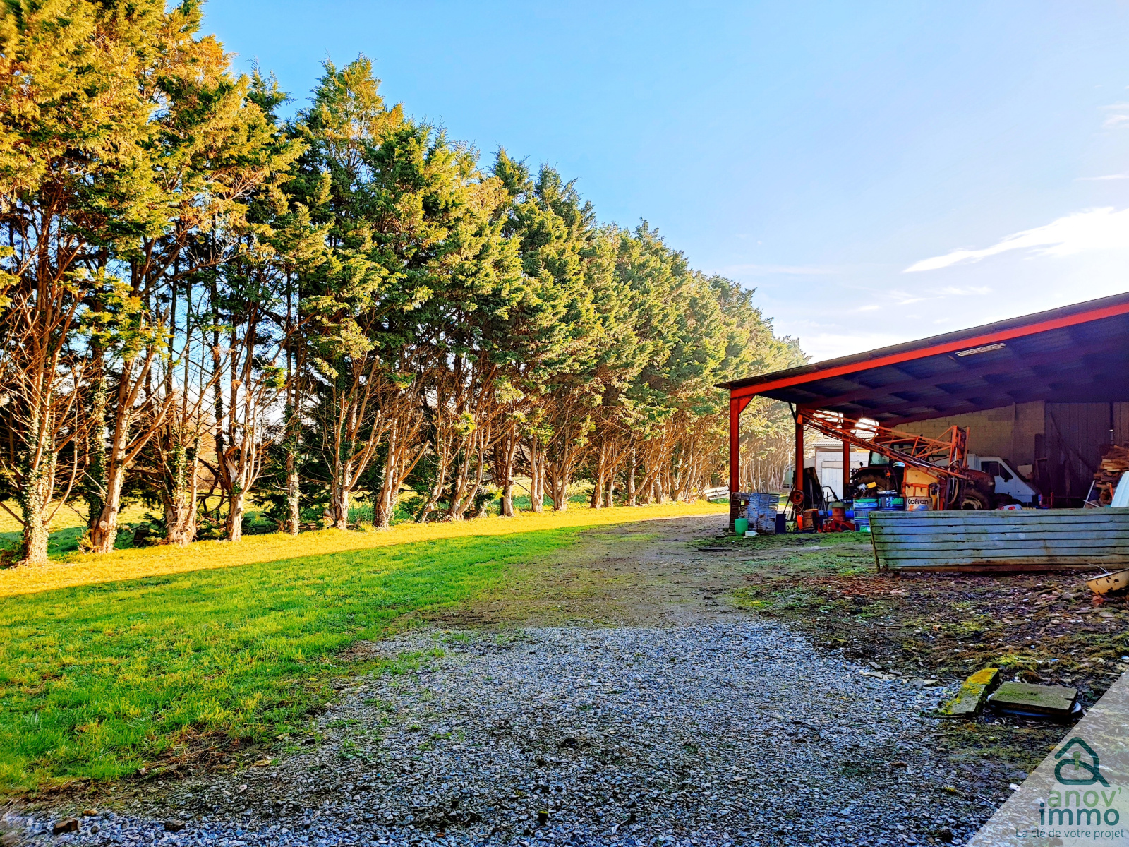 Le tout est établi sur un vaste terrain, prêt à répondre à vos envies de jardinage, de détente ou d’élevage.