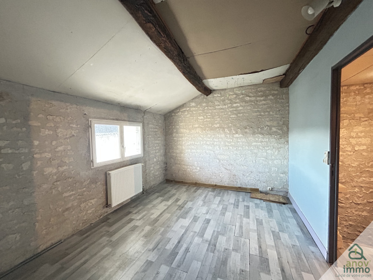 Au Rdc, cuisine et salon. WC et accès cave. Au 1er étage : palier , salle d'eaux et 2 chambres.