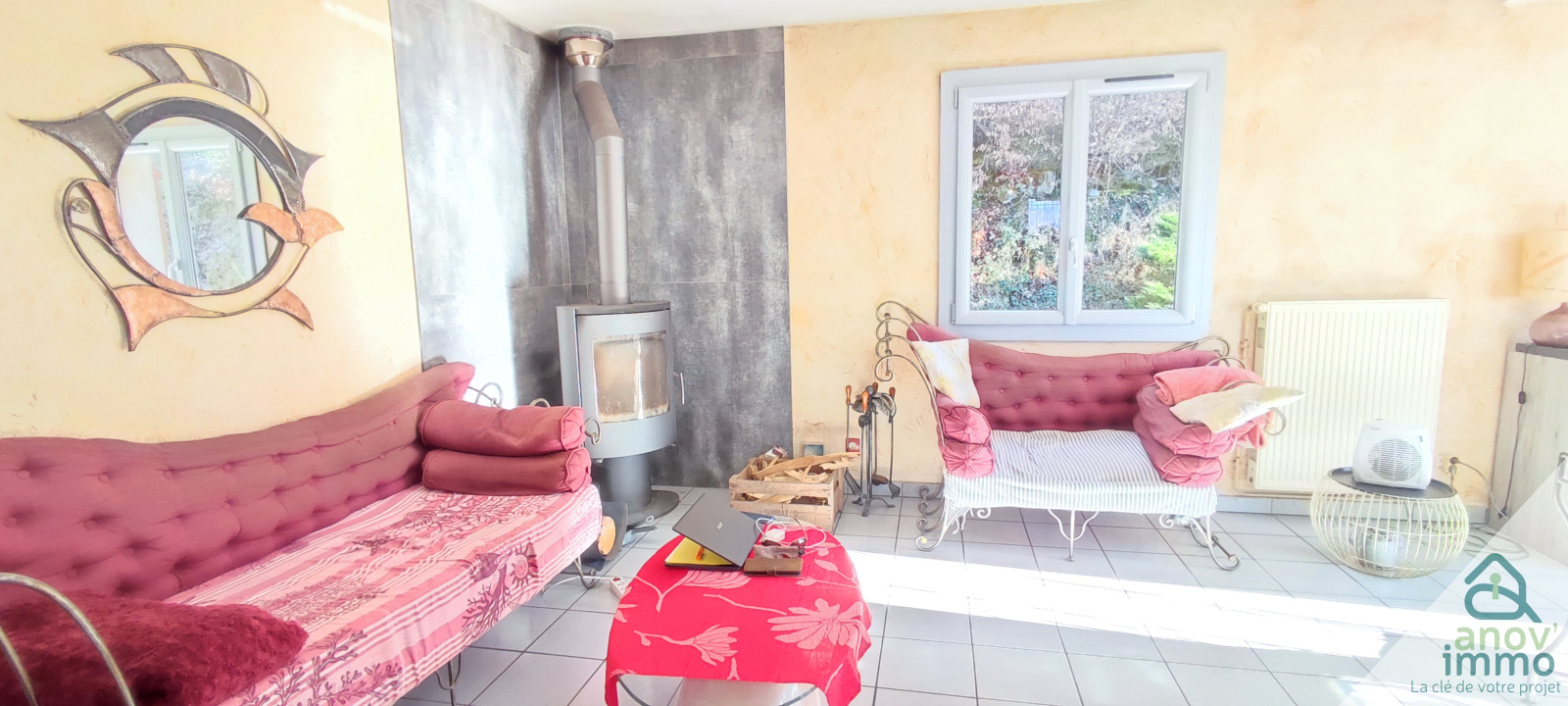 Un système de chauffage performant : plancher chauffant (chaudière fioul) associé à un poêle à bois. DPE D