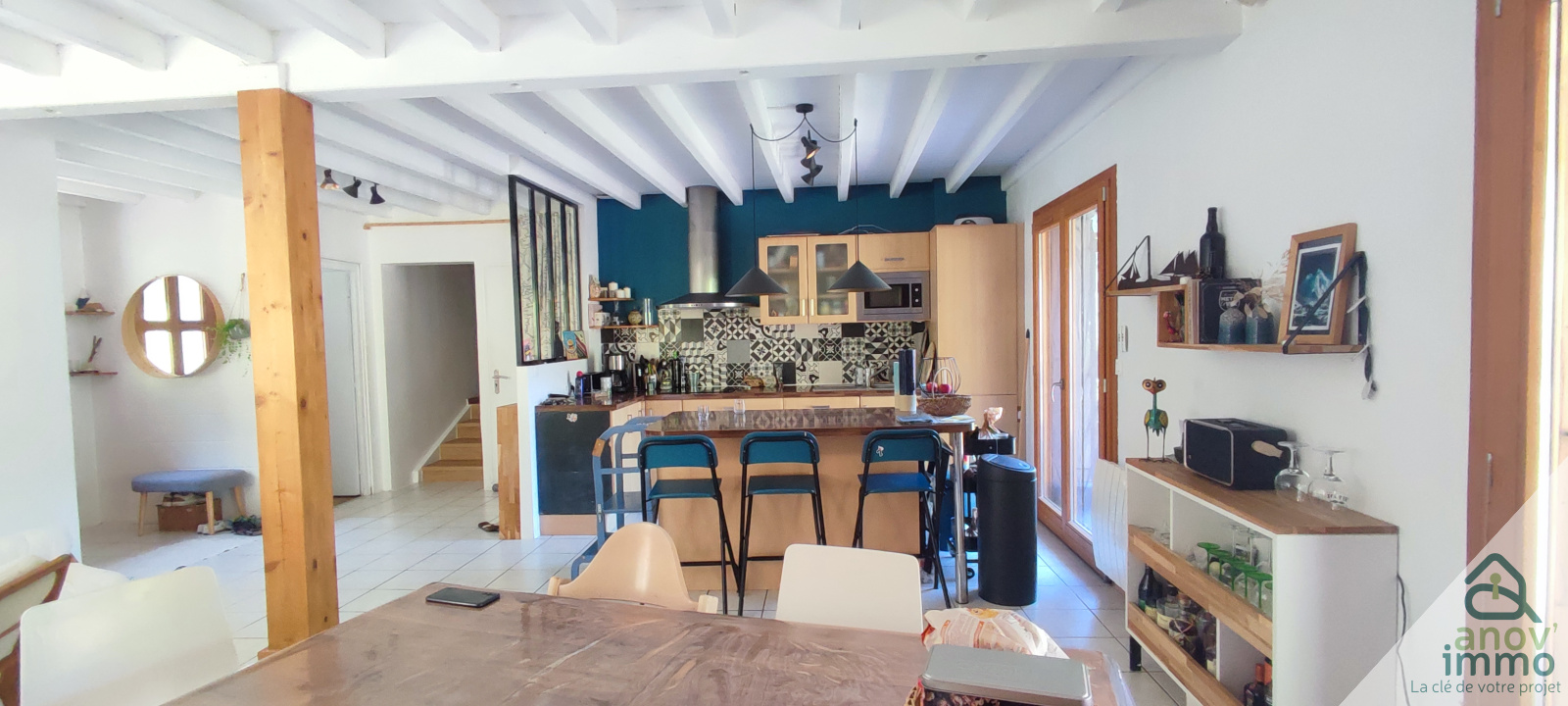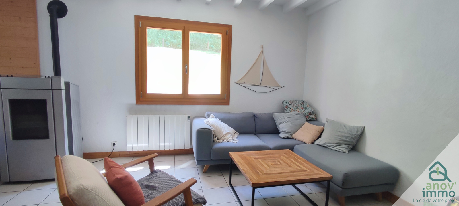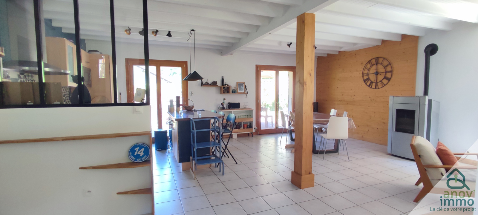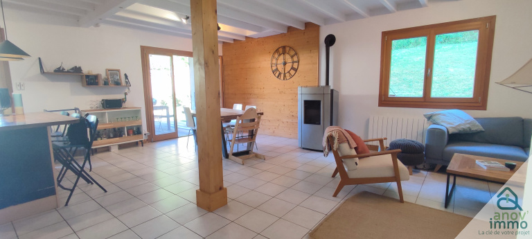 >Une grande pièce de vie lumineuse de 35 m², avec un poêle à granulés pour des hivers tout en douceur