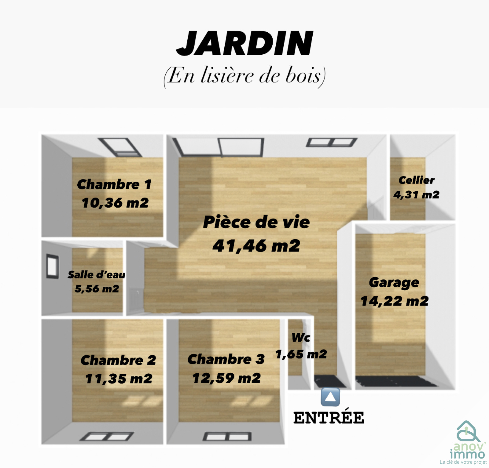 - Une ENTREE donnant sur une belle pièce de vie lumineuse avec CUISINE équipée, ouverte sur SALON - SALLE A MANGER (plaque induction - hotte - lave vaisselle - four) => 41.46 m2